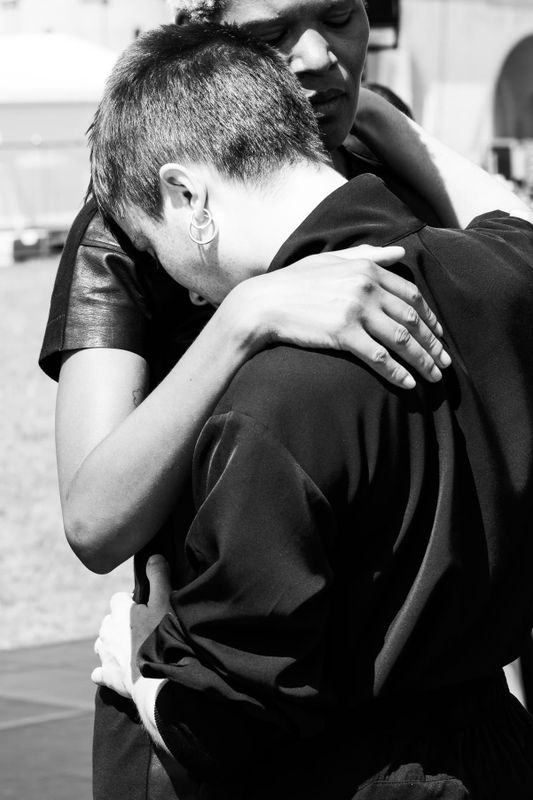 "Tijdens de researchfase hebben we geleidelijk aan meer intimiteit in het dansen toegelaten. Dat was er zeker niet vanaf het begin. Het proces verliep eigenlijk zoals een slow met iemand die je nog niet kent: eerst voorzichtig aftasten, en naarmate je elkaar beter aanvoelt, groeit het vertrouwen en de nabijheid. En dat is eigenlijk ook het proces geweest voor de voorbije negen weken."